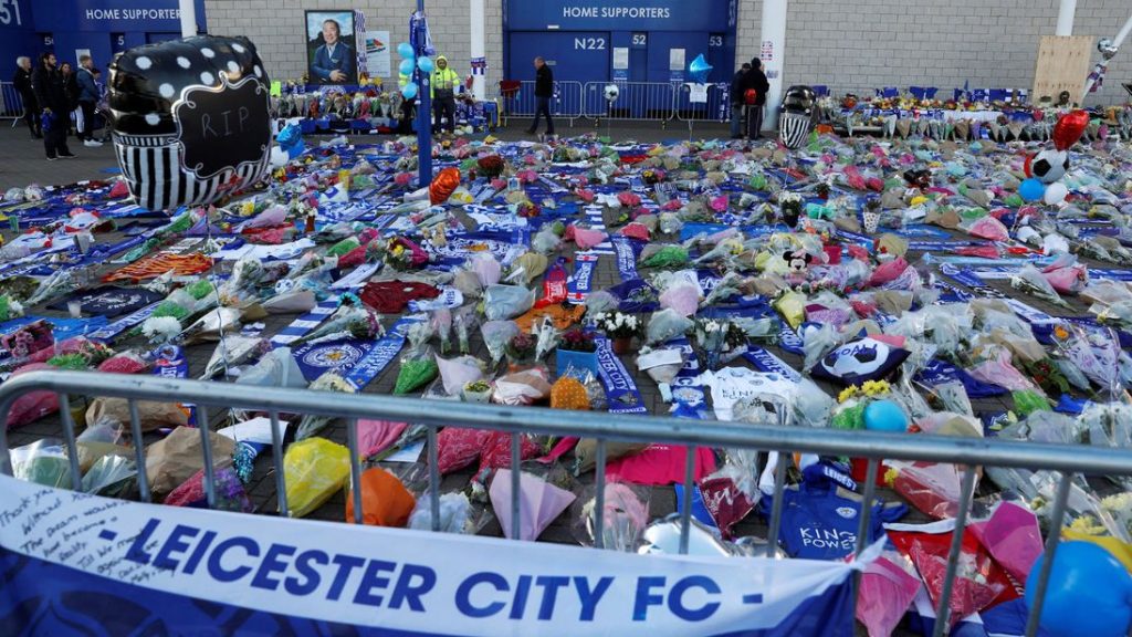 Vòng hoa tưởng niệm được đặt bên ngoài sân vận động King Power của Leicester City