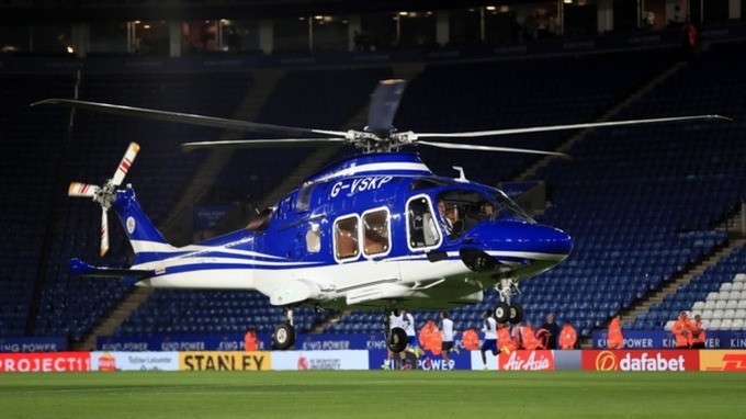 Máy bay trực thăng của Vichai Srivaddhanaprabha tại sân vận động King Power. Ảnh: PA