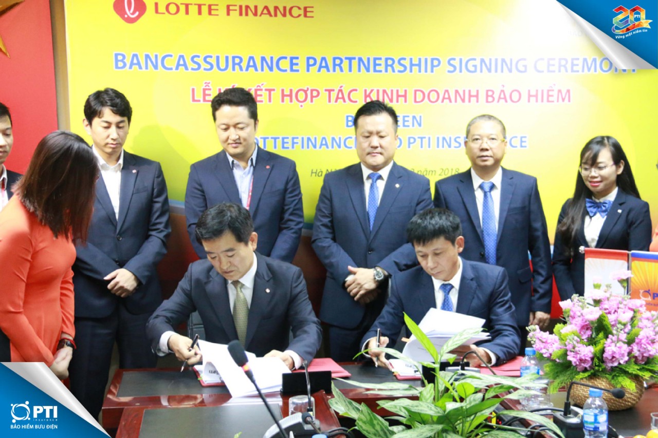 Lễ ký kết hợp tác giữa Tổng công ty cổ phần Bảo hiểm Bưu Điện (PTI) – doanh nghiệp bảo hiểm đứng thứ ba thị trường bảo hiểm phi nhân thọ Việt Nam và Công ty tài chính TNHH MTV Lotte Việt Nam (Lotte Finance Vietnam) – công ty 100% vốn chủ sở hữu Hàn Quốc vừa diễn ra tại Hà Nội.