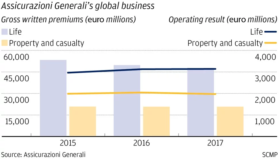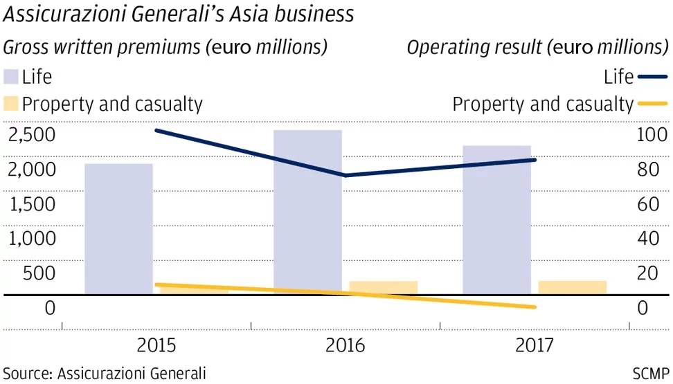 Trong nửa đầu năm 2018, mảng kinh doanh bảo hiểm nhân thọ của Generali ở châu Á có tổng doanh thu phí bảo hiểm gộp là 1.42 tỷ euro, tương đương khoảng 6% của toàn bộ doanh thu bảo hiểm nhân thọ.