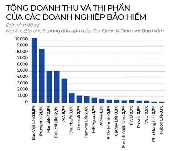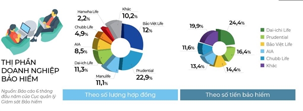 Số liệu trong 6 tháng đầu năm nay cho thấy, thị trường tiếp tục diễn biến thuận lợi khi tổng phí khai thác mới trên toàn thị trường tăng 31% so với cùng kỳ. Tuy nhiên, ấn tượng trong đó vẫn là Dai-ichi Life, xếp sau Bảo Việt, nhỉnh hơn Prudential một chút và 2 thứ hạng tiếp theo lần lượt là Manulife và AIA.